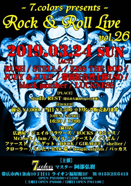 RUSH STELLA KISS THE ROD JUDY & JUDY 帯廣狂音烈士隊LSD black panther LUCKNESS |