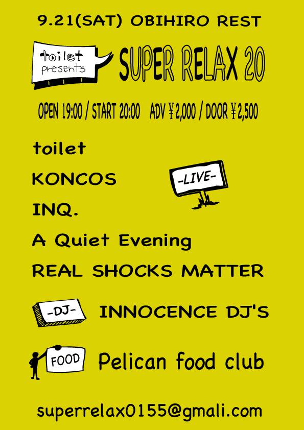 -LIVE- toilet KONCOS INQ. A Quiet Evening REAL SHOCKS MATTER -DJ- INNOCENCE DJ'S -FOOD- Pelican food club |