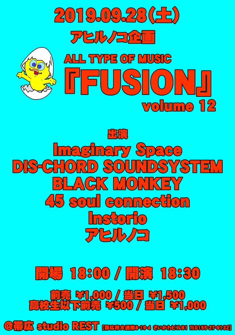 2019/9/28(土) アヒルノコ PRESENTS 「ALL TYPE OF MUSIC FUSION VOL.12」