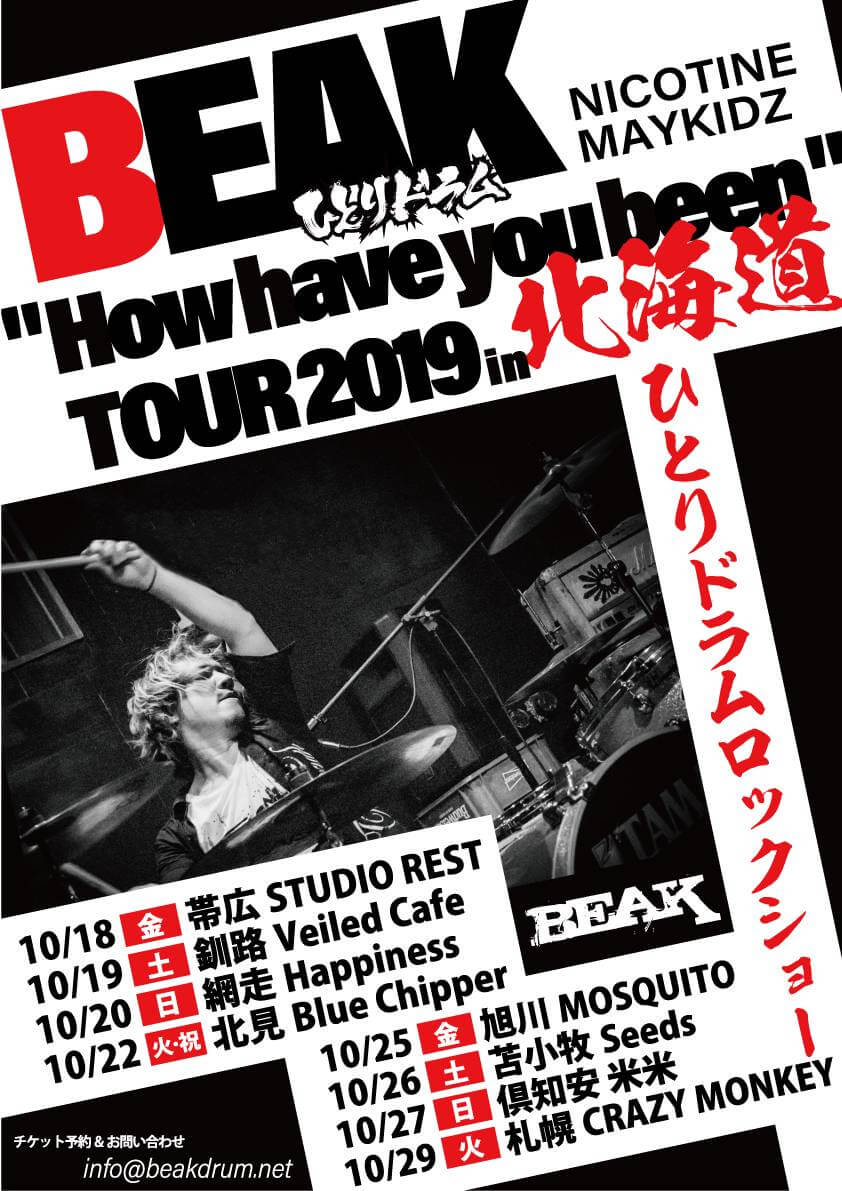 2019/10/18(金) ひとりドラムロックショー!! BEAK(NICOTINE/MAYKIDZ) “How have you been TOUR 2019” in 北海道