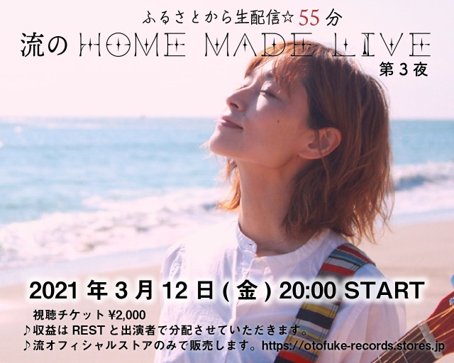 20:00 START 視聴チケット¥2,000 収益はRESTと出演者で分配させていただきます。 流オフィシャルストアのみで販売します。 https://otofuke-records.stores.jp |