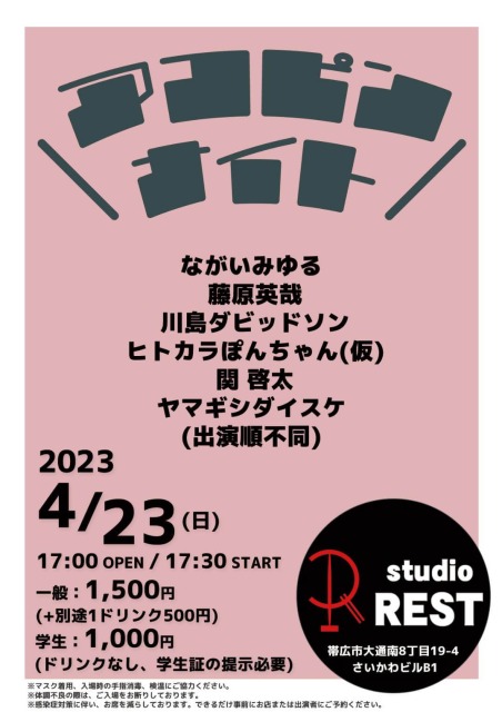 場所: 帯広 studio REST 帯広市大通南8-19-4 さいかわビルB1【地図】 TEL: 0155-27-0132 TEL: 090-3899-5767 Tweet