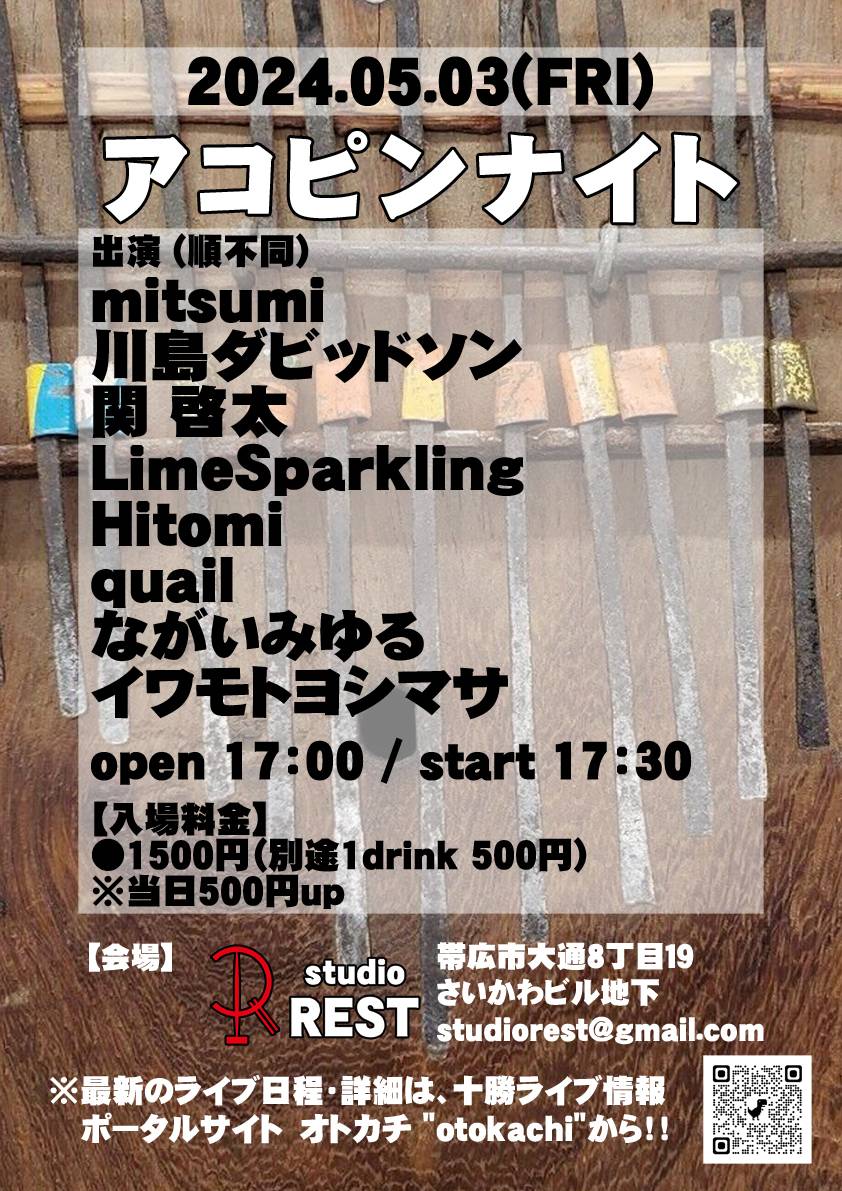 場所: 帯広 studio REST 帯広市大通南8-19-4 さいかわビルB1【地図】 TEL: 0155-27-0132 TEL: 090-3899-5767 Tweet