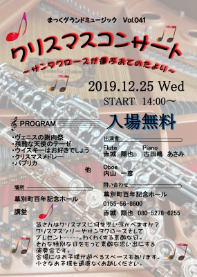 2019/12/25(水) まっくグランドミュージック Vol.041 クリスマスコンサート 〜サンタクロースが運ぶおとのたより〜